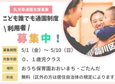 【募集受付開始:5/1(金)~】令和8年度『こども誰でも通園制度』の利用者を募集します|おうち保育園おおいまち、おうち保育園ごたんだ
