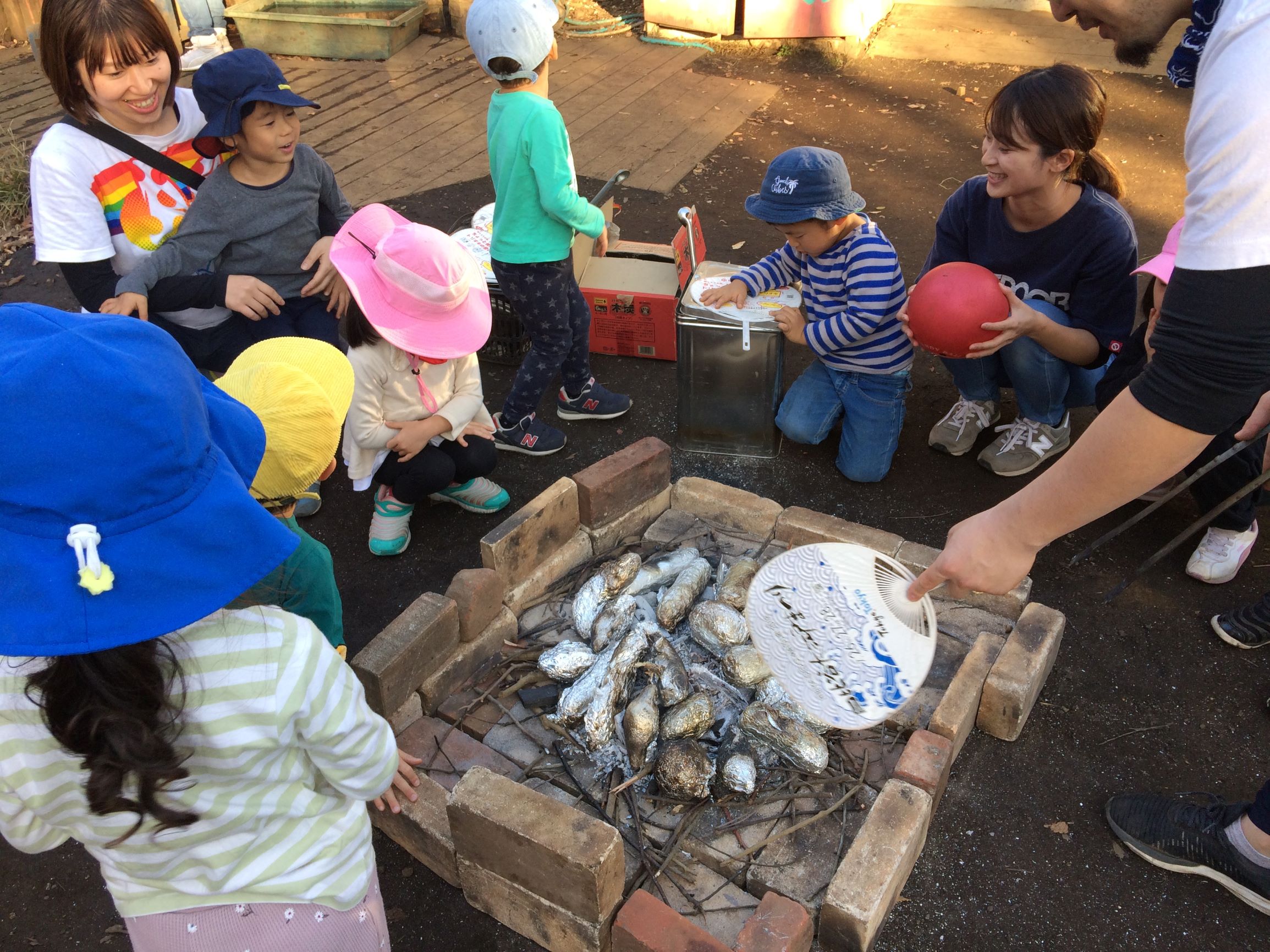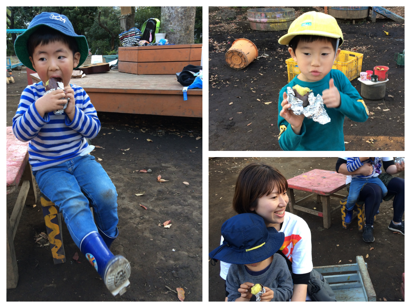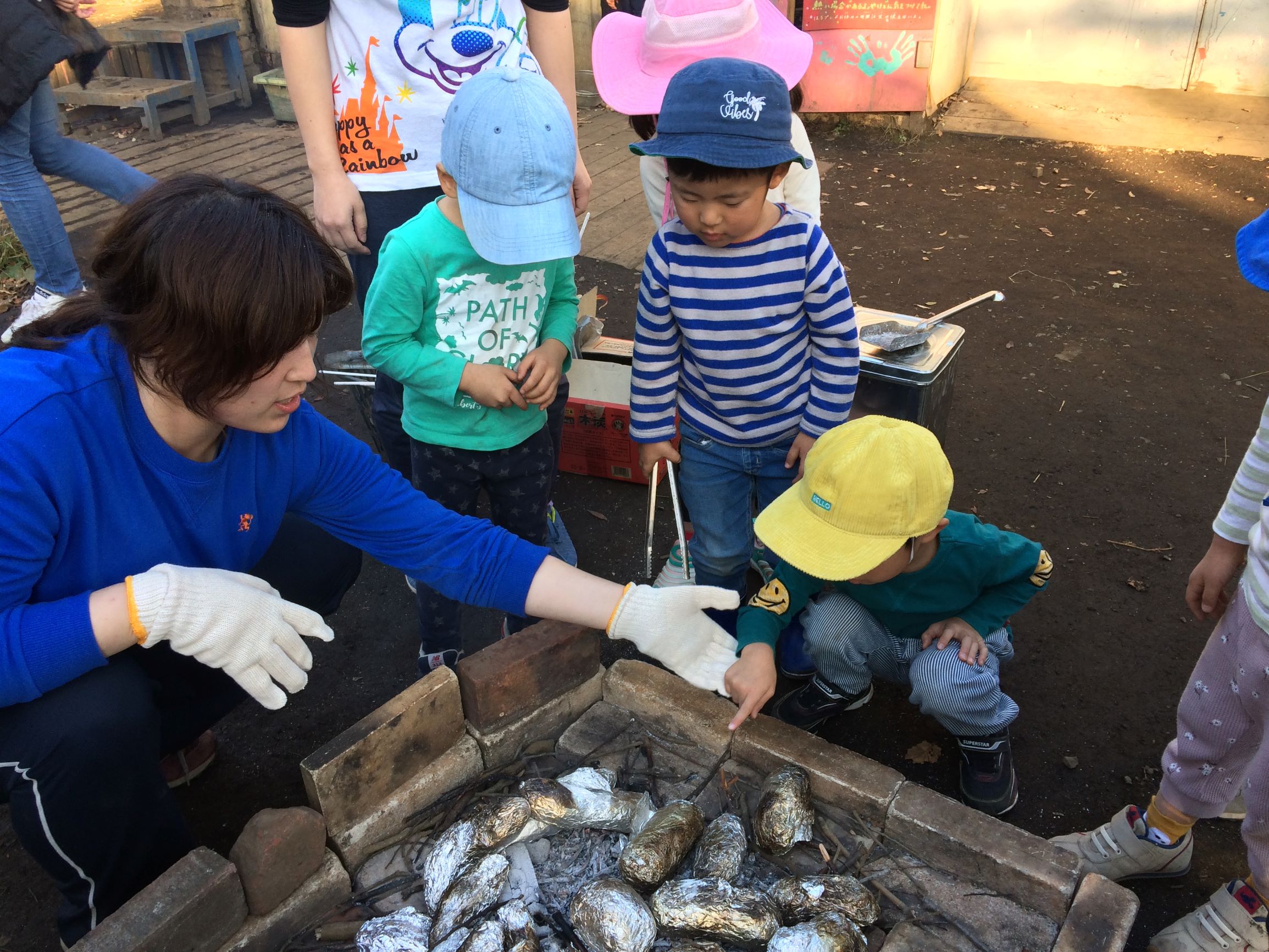 サークルタイムが終わるとお待ちかねの焼き芋を食べる時間になりました!