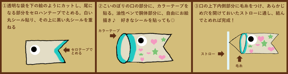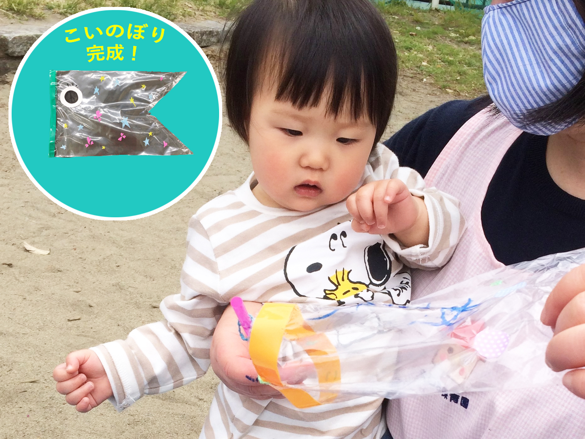 完成したこいのぼりは、後日皆で公園に行き、泳がせて遊びました。