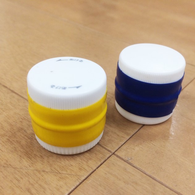 ペットボトルの蓋も、皆の家で集めて再利用。子ども達のおもちゃを作りました。