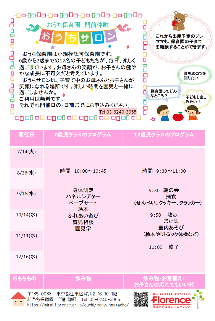 おうち保育園門前仲町に遊びにきませんか?