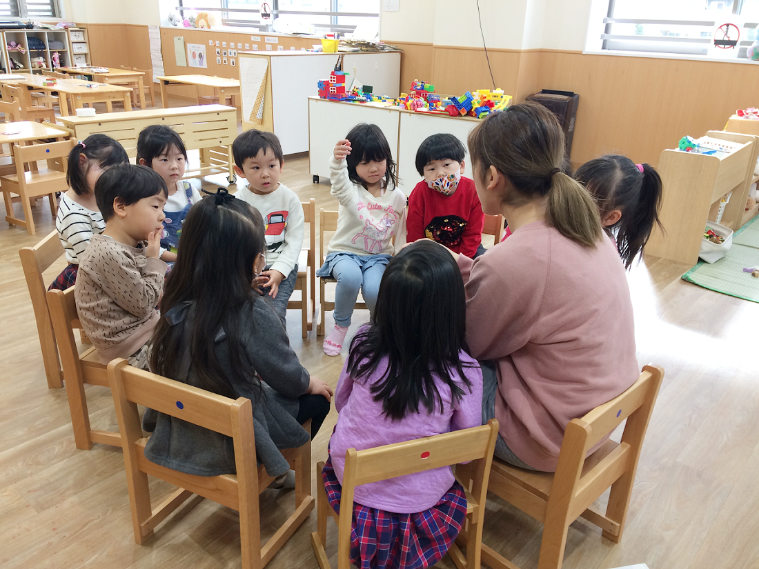 自分の感情に向き合い感情カードを毎朝選ぶことや、輪になって園生活について話し合うサークルタイムやピースフルスクール・プログラム(オランダ発祥の自立と共生のプログラム)を更に大事にしてきた昨年度、毎日何かしら輪になって話し合っていると、4歳児がある日、ある意見に対して、