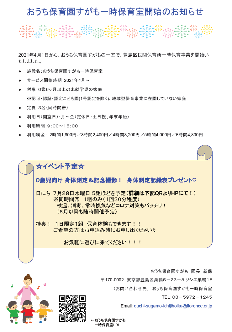 特典:1組限定でおうち保育園すがもでの保育体験もできます!!