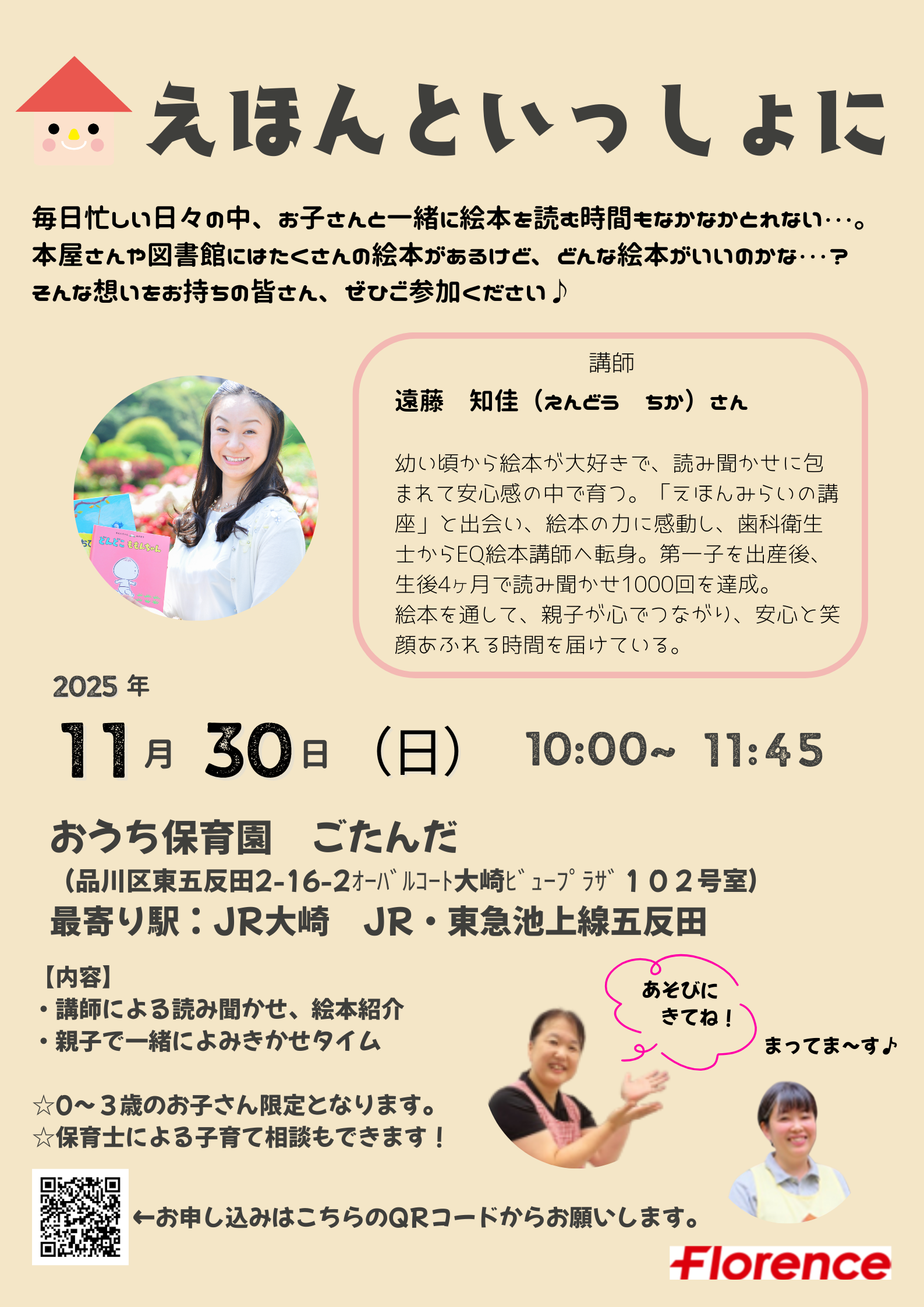 親子で保育園に遊びに来れる絵本読み聞かせイベント「えほんといっしょに」を開催します。