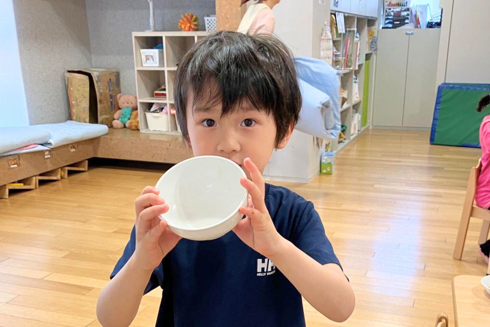 フローレンスの保育園では、調理スタッフも配膳や食事の様子を見ながら、毎日こどもと関わることを大切にしています。