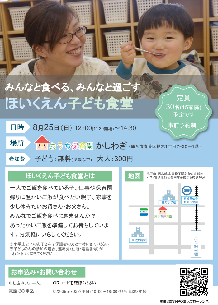 2019年8月25日におうち保育園・仙台で、「ほいくえん子ども食堂」をオープンします!