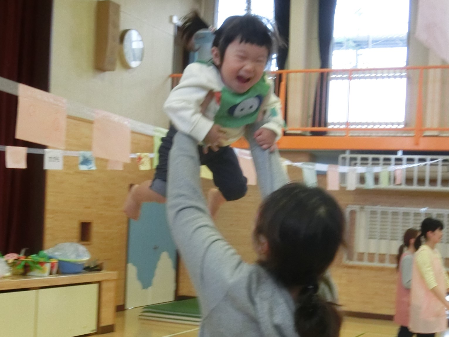 1歳児クラス、2歳児クラスの子も保護者のもとに一直線に走っていき抱きつく姿が見られとても微笑ましかったです。